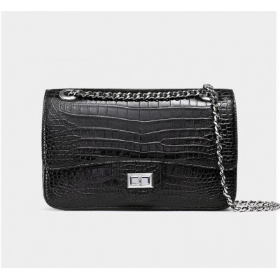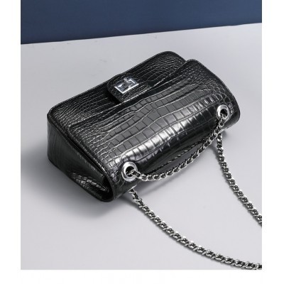 Главная > сумки > Samsonite > Аутентичный женский кошелек из крокодиловой кожи живота, женская сумка с клапаном из натуральной кожи аллигатора, серебряная фурнитура