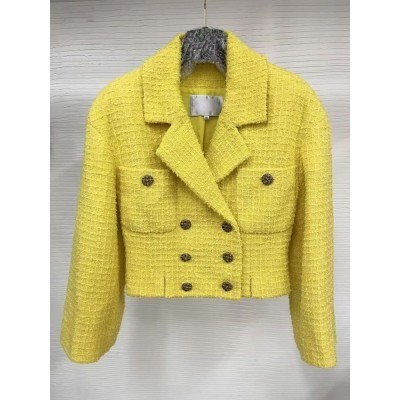 Autumn Women Short Double Breasted Tweed Jacket Luxury Brand Designer Vintage Office Lady Slim Fit C