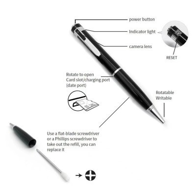 الرئيسية > HD 1080P Portable Ballpoint Mini Camera 4 In 1 Writing Take Photos Video& Audio Recording Pen Ca