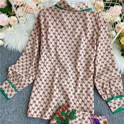 الرئيسية > vestir > Fashion Vintage Two Piece Set 2022 Summer Turn Down Collar Long Sleeves Blouse Lady Tops+ Shorts Wom