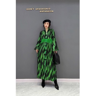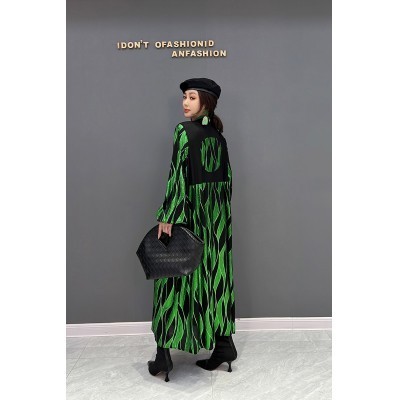 XITAO Fashion Vintage Dress Loose Simplicity Contrast Color Women Stand Collar Single Breasted Tasse