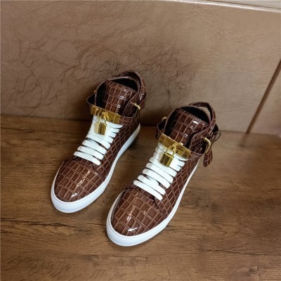 Men Winter Fur Boots Alligator Pattern Lock Lace Flats Glossy Real Leather Newest Designer High Top(