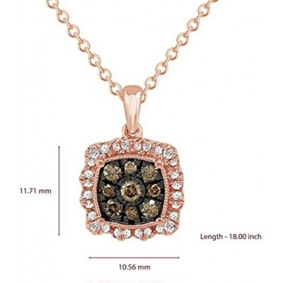 CARATS FOR YOU 13 Ct Round Brown & White Diamond 10k Rose Gold Square Shape Pendant 18 Ne