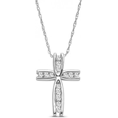 10K White Gold Diamond Cross Pendant with Sterling Silver Chain Necklace (14 cttw, I-J Color, I2-I3