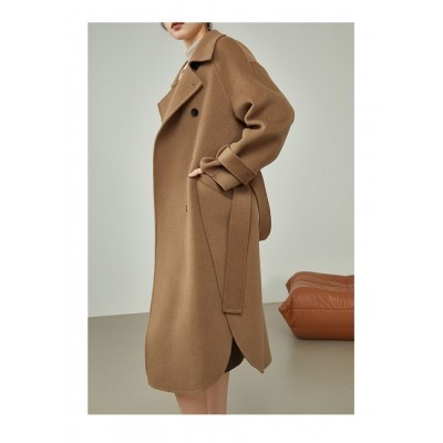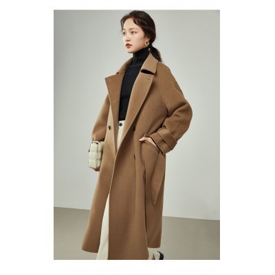 FSLE Womens Winter Korean Temperament Double-breasted 100% Wool Double-faced Woolen Coat Fashion St