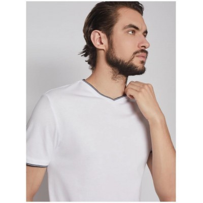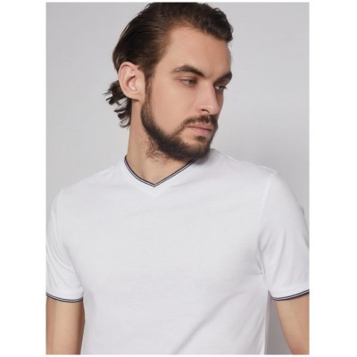 Футболка из хлопка с треугольным вырезом, цвет Белый, размер M(2 шт)