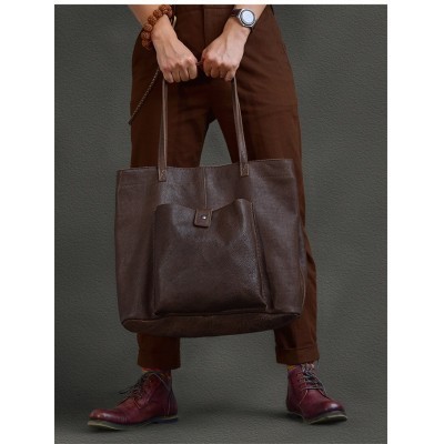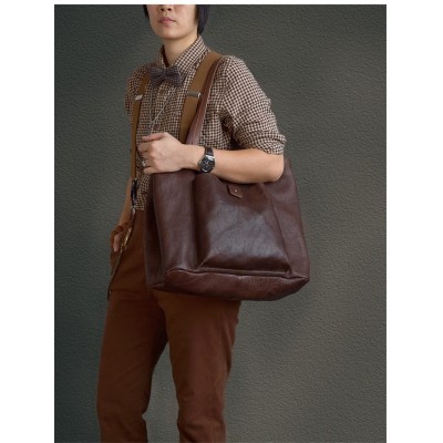 Fashion retro luxury natural real leather mens oversized tote bag daily outdoor travel large-capaci(