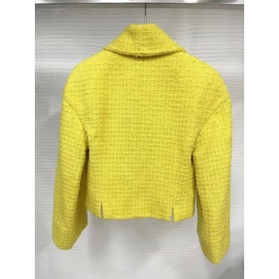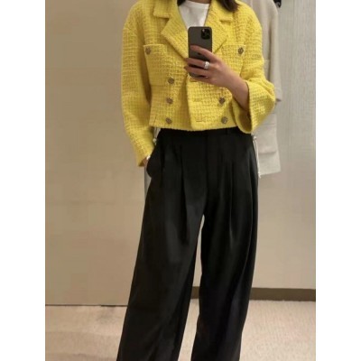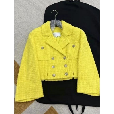 Autumn Women Short Double Breasted Tweed Jacket Luxury Brand Designer Vintage Office Lady Slim Fit C