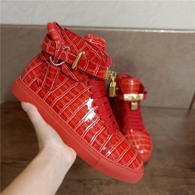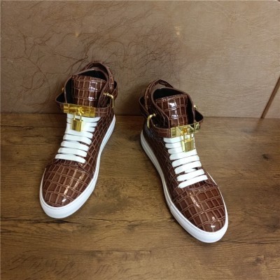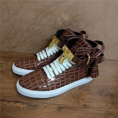Men Winter Fur Boots Alligator Pattern Lock Lace Flats Glossy Real Leather Newest Designer High Top(