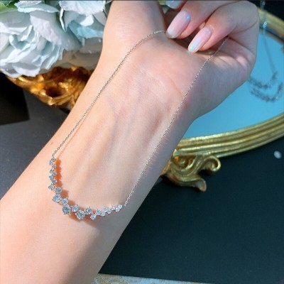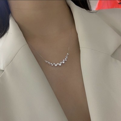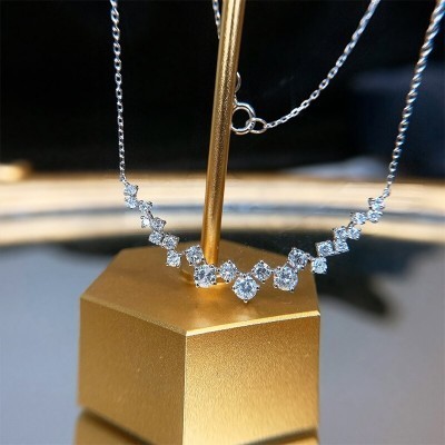 LUOWEND 100% 18K White Gold Pendant Necklace Real Natural Diamond Necklace Proposal Wedding Party Je