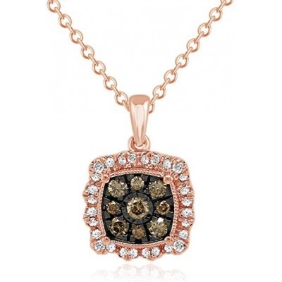 CARATS FOR YOU 13 Ct Round Brown & White Diamond 10k Rose Gold Square Shape Pendant 18 Ne