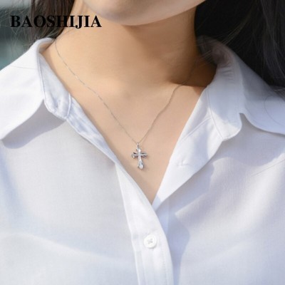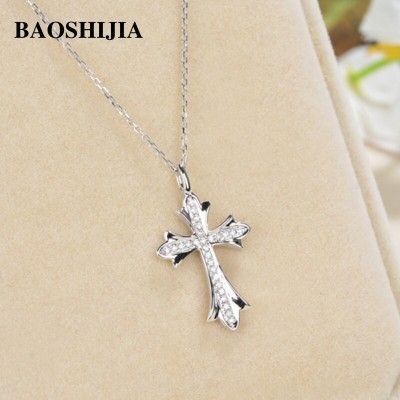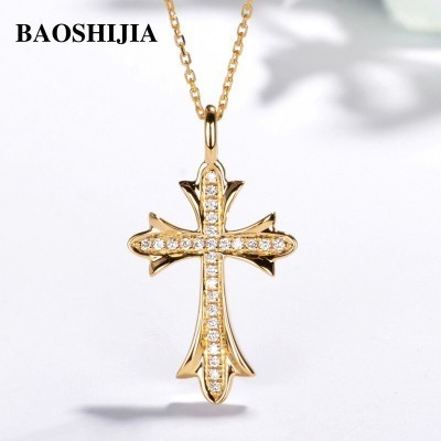 BAOSHIJIA Solid 18k YellowRoseWhite Gold Cross Natural Diamond Necklace Pendant Jewelry Women Deli