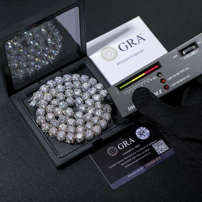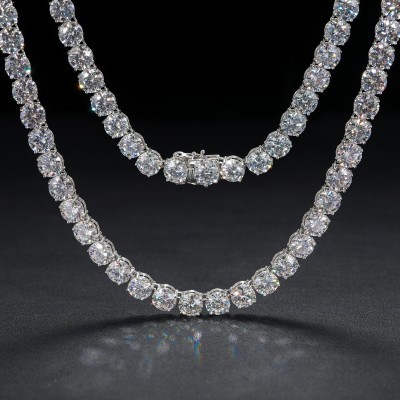 قلادة سلسلة تنس مرصعة بحجر مويسانيت لامع 10 مم، مصنوعة من الفضة الإسترليني عيار 925 بنسبة 100%، اجتا