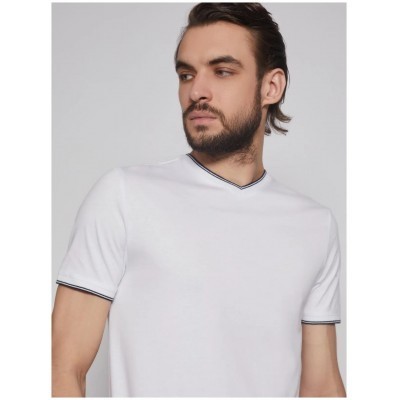 Футболка из хлопка с треугольным вырезом, цвет Белый, размер M(2 шт)